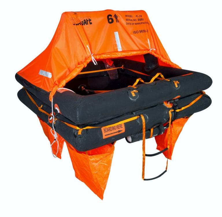 • Notfallausrüstung: Trinkwasser, Lebensmittel, Erste-Hilfe-Set, Signalraketen, Hitzeschutzdecken, Signalpfeife – je nach Modell für 4-12 Personen.​